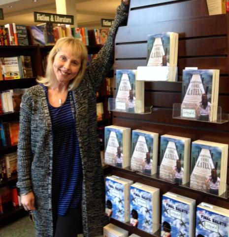 Kathleen M. Rodgers' novels displayed on endcap at Barnes & Noble